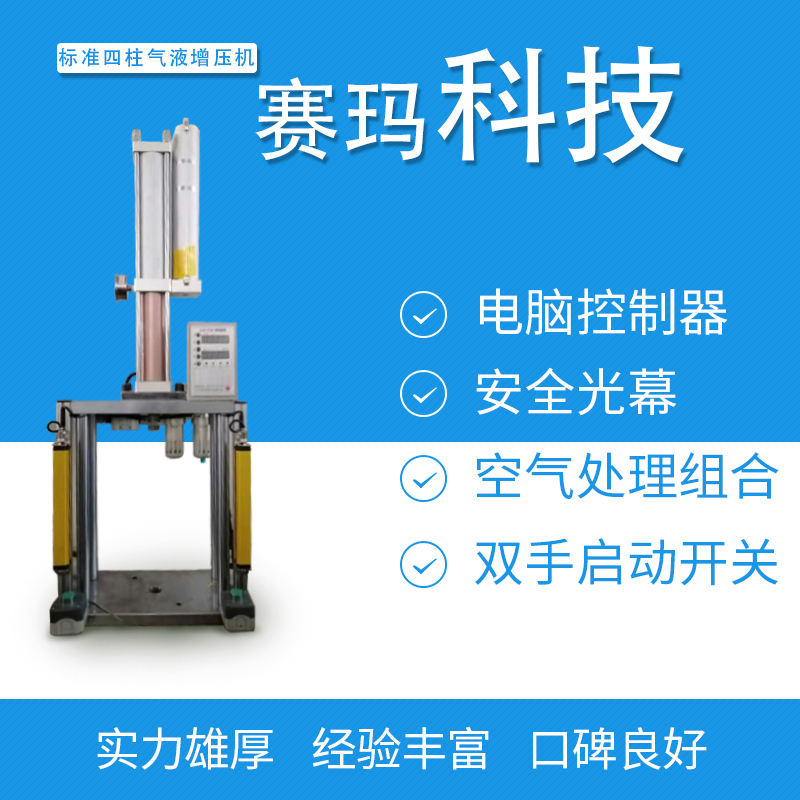6:标准四柱气液增压机适用场合广泛:广泛用于零部件的压型、压弯、冲孔、压印,及轴类零件的压装等。